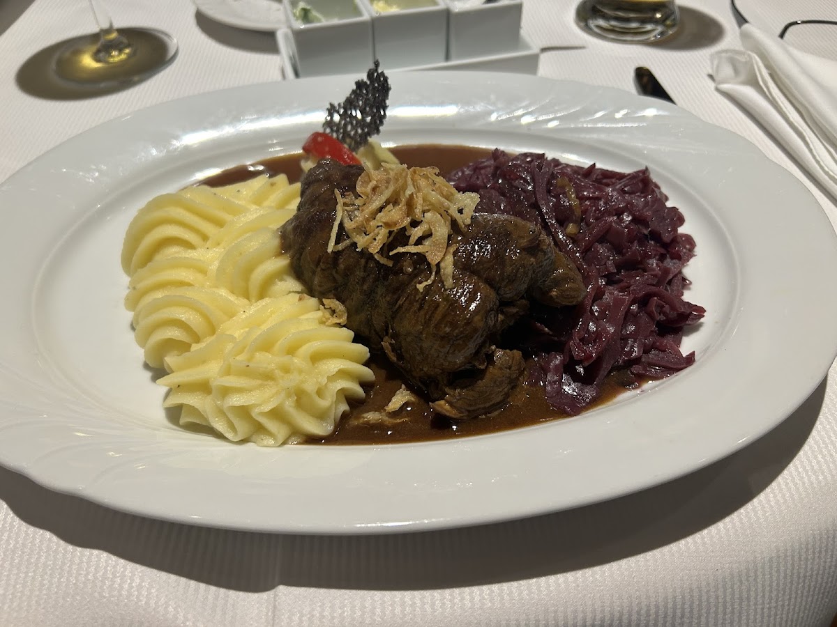 If you're looking for something more traditional, the Hausgemachte Roulade (homemade roulade) is a classic favorite. With its savory filling and tender beef, it offers a satisfying taste of home-cooked goodness. Another standout is the Roastbeef mit Remoulade und Brägele, a dish that features succulent slices of roast beef paired with a tangy remoulade and crispy Brägele (fried potatoes). Each bite is a celebration of bold flavors and textures that reflect the restaurant's commitment to quality.